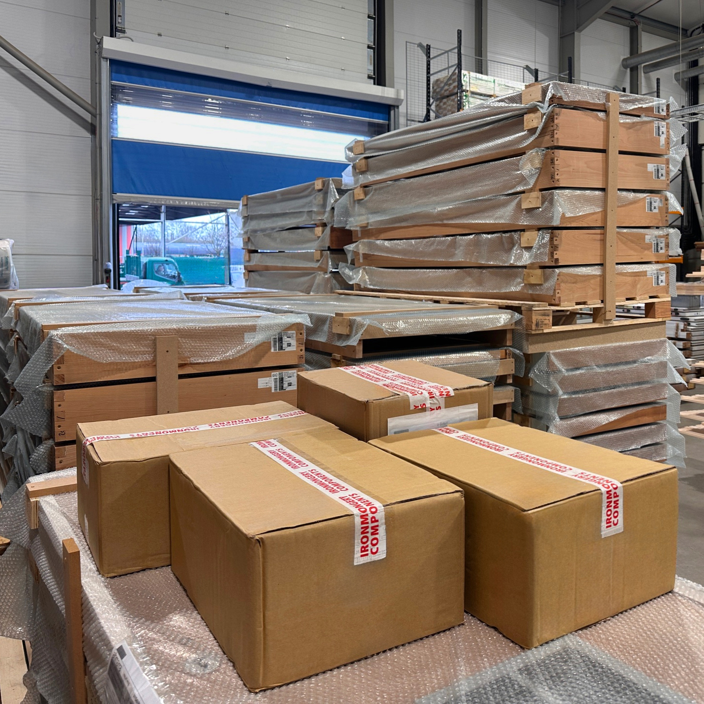 Ancillary ironmongery will be boxed in bulk and palletised for site fitting.