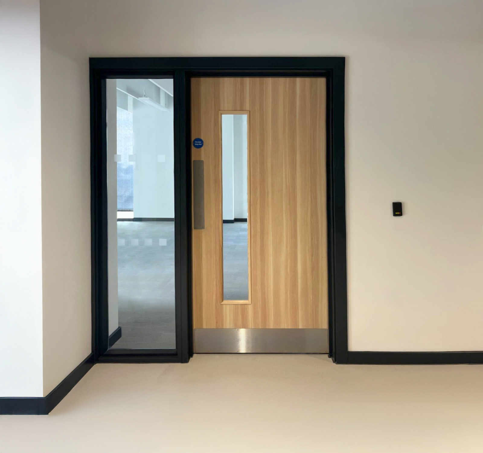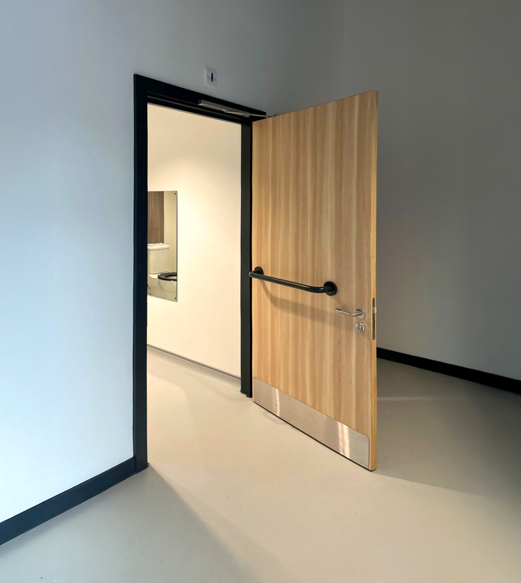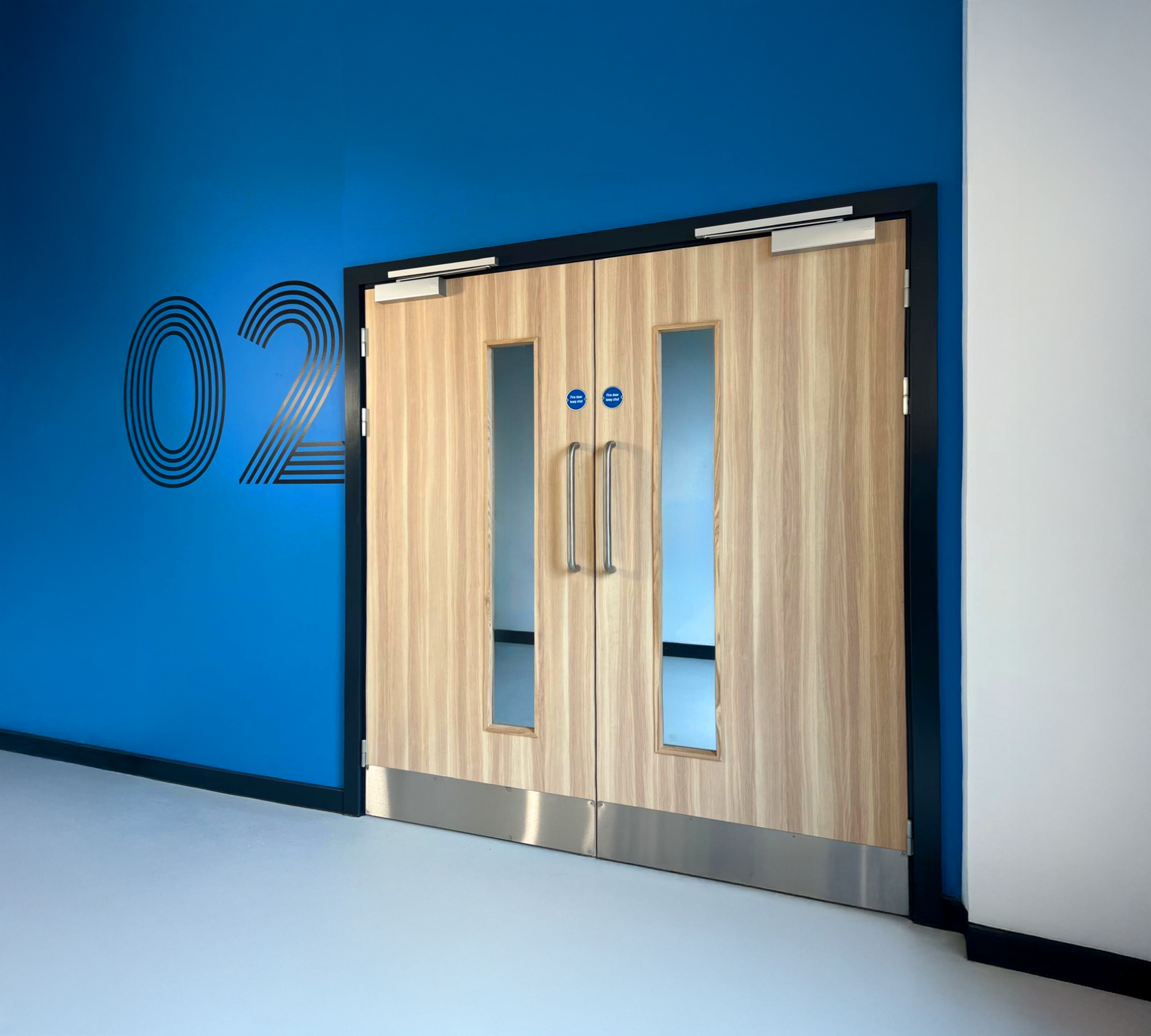 Doorset are designed to meet BS 8300 guidance – the British Standard that relates to the design of buildings and their approach to meeting the needs of disabled people. As such, doors provide an effective clear opening width that ensures all staff, students and visitors – including those with wheelchairs and walking aids – can pass freely through them.